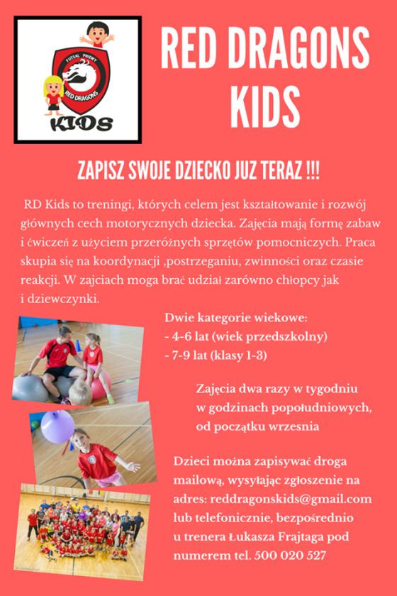 Wciąż można dołączyć do RD Kids, zapisy mailowo na reddragonskids@gmail.com lub bezpośrednio przed zajęciami u trenerów. Chętnych zapraszamy !!!