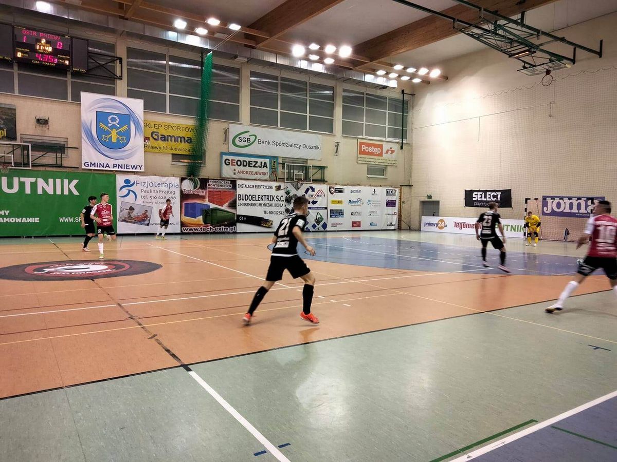 Trwa niestety nasza czarna seria meczów bez zwycięstwa w Pniewach. Wczoraj po raz 9 z rzędu nie potrafiliśmy wygrać w swojej hali. Od pierwszych minut to nasz zespół prowadził grę i był stroną przeważającą. Goście skupili się na obronie i kontrataku. Pierwszą doskonałą okazję na zdobycie gola miał Michal Roj, ale przegrał starcie z bramkarzem. Chwilę później Andrej Baklanov huknął nie do obrony po podaniu z rzutu rożnego i objęliśmy prowadzenie. Chojniczanie mogli wyrównać ale Storozuk nie trafił w dogodnej sytuacji.
