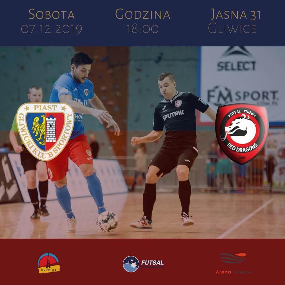 Po tygodniowej przerwie wracamy na parkiety Futsal Ekstraklasy. W sobotę, 7 grudnia w hali przy ulicy Jasnej 31 zostanie rozegrany mecz w ramach 11. kolejki pomiędzy Piastem Gliwice a Red Dragons Pniewy. Spotkanie rozpocznie się od godziny 18:00, a transmisja na żywo z tego meczu zostanie przeprowadzona w telewizji Internetowej TVCom.pl (fot. Piast Gliwice).
