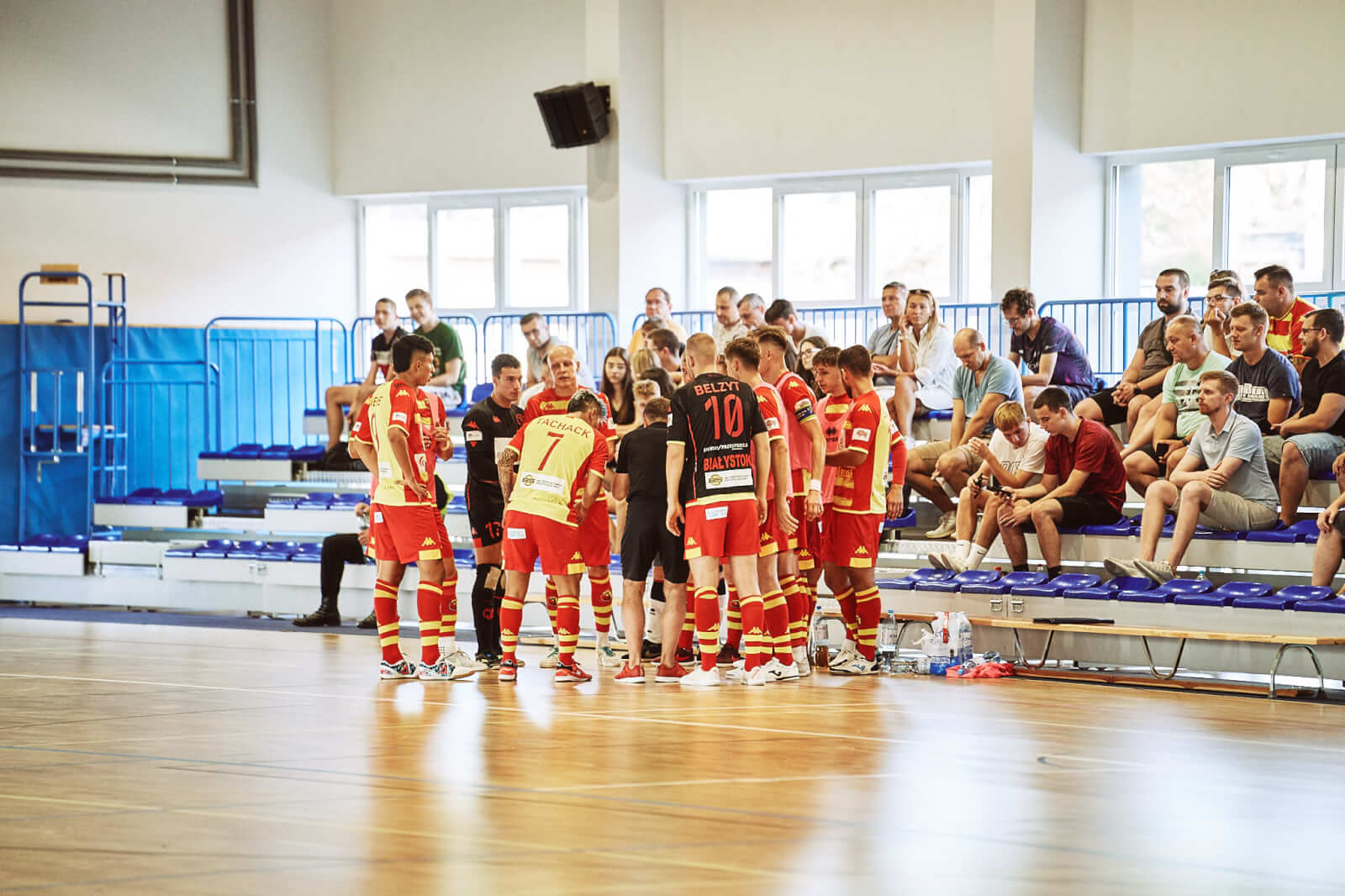 Latem, tuż przed startem nowego sezonu Futsal Ekstraklasy, MOKS Słoneczny Stok Białystok ogłosił nawiązanie współpracy z Jagiellonią Białystok występując w rozgrywkach futsalowych pod nową nazwą: MOKS Słoneczny Stok Jagiellonia Białystok. Nasi sobotni rywale grają w charakterystycznych żółto – czerwonych barwach, z których słynie trawiasty klub z Podlasia (fot. D. Przestrzelski).