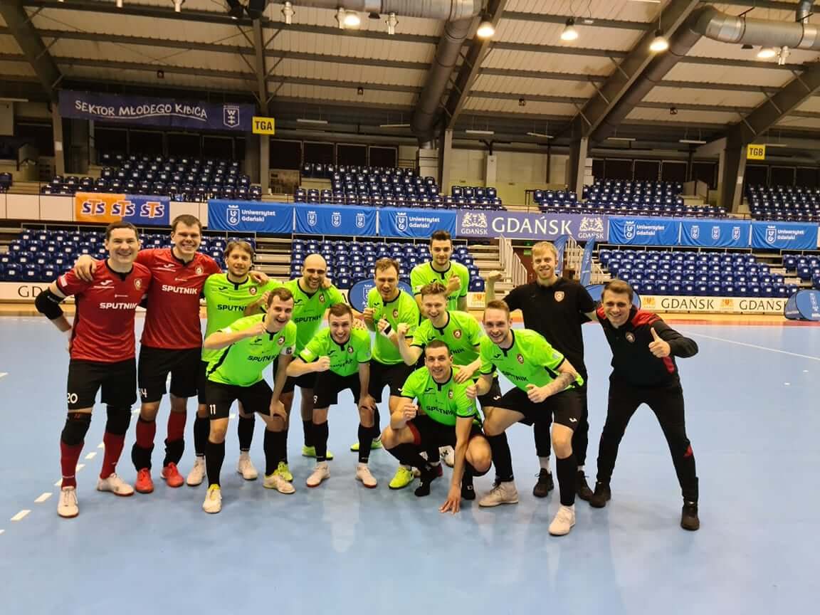 Tradycji stało się zadość. Znów wygraliśmy z AZS-em UG Gdańsk tym razem 4:3, choć przez całe spotkanie musieliśmy gonić rywali. Wysoki pressing jako stosowali nasi zawodnicy był dobrym pomysłem, bowiem gospodarze nie potrafili sobie poradzić w tej sytuacji. Jeden prosty błąd spowodował jednak, że miejscowi po uderzeniu Domżalskiego objęli prowadzenie. Piłka szczęśliwie odbita od słupka wpadła do bramki Rafała Roja. Wyrównał Maksym Pautiak, wykorzystując prosty błąd w obronie gdańszczan, jednak bardzo szybko drugą żółtą kartkę otrzymał Nikita Storozhuk i graliśmy w osłabieniu. W przewadze grający trener AZS-u Wojciech Pawicki znakomitym uderzeniem wyprowadził swój zespół na prowadzenie.